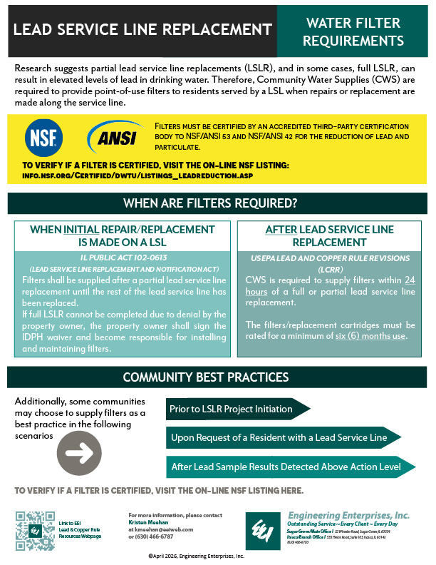 Research suggests partial lead service line replacements (LSLR), and in some cases, full LSLR, can result in elevated levels of lead in drinking water. This infographic explains the filter requirements that will soon be required during partial LSLR.