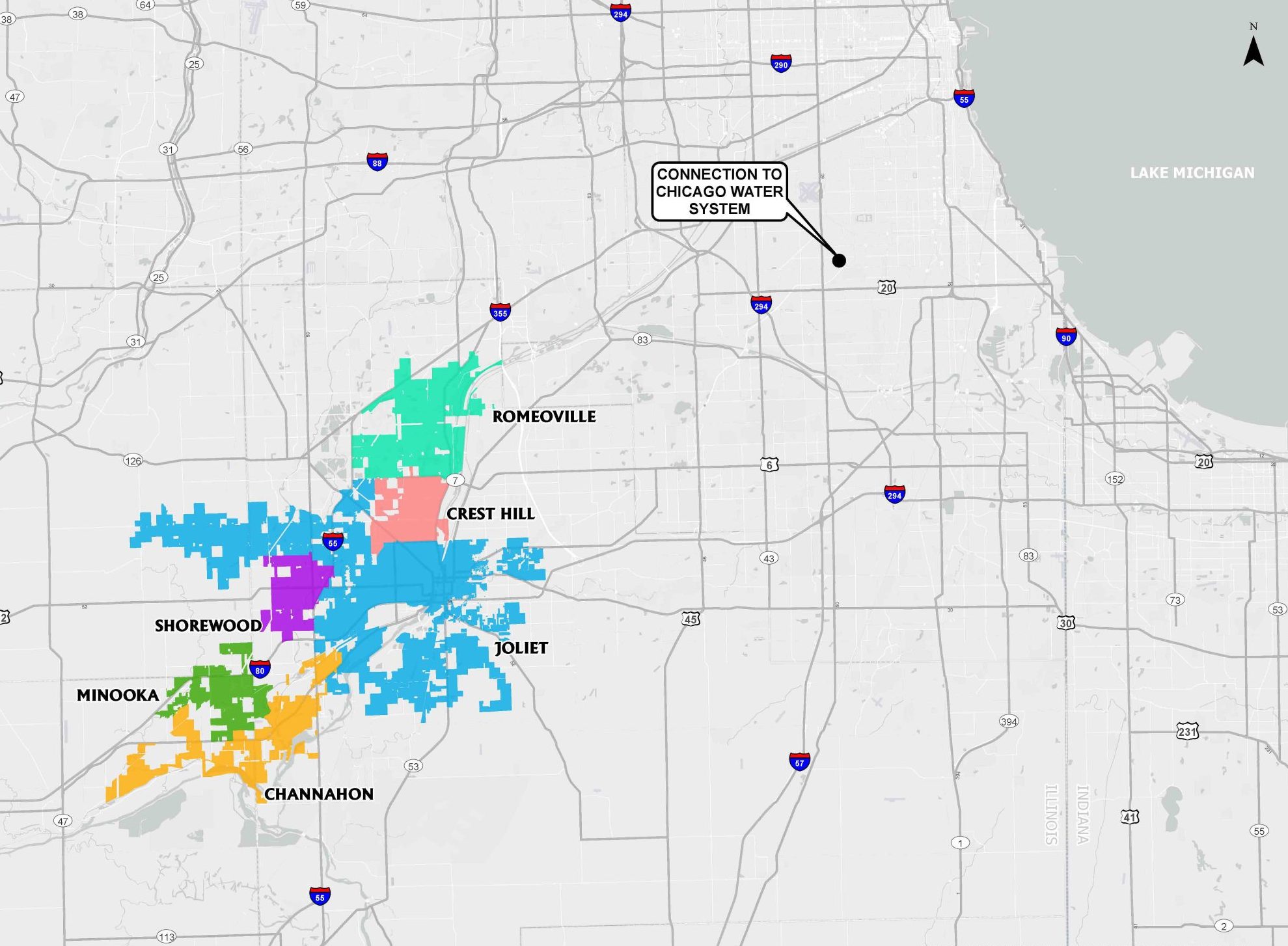 In 2018, the City of Joliet initiated a wholistic review of the sustainability of their existing groundwater sources. Once it was determined the City’s existing water source may not be able to meet peak demands in 2030, the study transitioned to evaluating alternative water sources. After evaluating 15 alternative water sources, the City chose to switch to Lake Michigan water through a connection with the City of Chicago. Five other communities, Villages of Channahon, Minooka, Shorewood, and Romeoville and the City of Crest Hill joined the City of Joliet to form the Grand Prairie Water Commission. The $1.4B project is planned to provide Lake Michigan water to all six (6) communities by May of 2030. EEI has been providing planning, design, land surveying, and funding services to the commission members since 2018. EEI also is providing facilitation and administrative services to the GPWC Techincal Advisory Group (TAC).